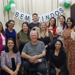 1. Jasmin Jaiany (secretária); 2. Nádia Cristina (estagiária de Psicologia); 3. Alília Cesário (estagiária de Psicologia); 4. Lusmara França (Neuro-Psicopedagoga); 5. Ana Beatriz (Psicóloga); 6. Ana Letícia (Coordenadora); 7. Rosa Elena (estagiária de Psicologia); 8. Sandra Maria (estagiária de Psicologia); Sentados: 9. Luiz Gustavo (estagiário de Psicologia); 10. Adhemar Chufalo (estagiário de Psicologia); 11. Marianna Lima (Intérprete de Libras).