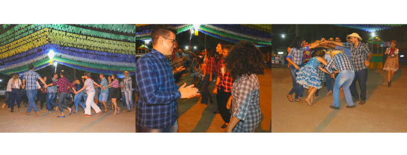 Bom mas para que tudo aconteça conforme ou pelo menos próximo do planejado, muita coisa também acontece nos bastidores… rsrsrs. Sim, na organização da nossa festa junina de 2018, tudo estava preparado para o tão esperado DIA, a equipe estava ok, a decoração estava ok, os brindes estavam ok, as brincadeiras estavam ok, as comidas estavam ok, a quadrilha que nunca ensaia mas que sempre arrasa estava ok, mas e o PUXADOR/ANIMADOR? Meu Deus vocês não acreditam, mas o nosso animador de todos os anos me avisou às vésperas do grande dia que não poderia estar presente. Gente, eu quase caí para trás… me bateu um desespero… A festa é daqui a dois dias e agora? Então fui em busca de indicações de outras pessoas, mas nada dava certo, pois como era período de festa junina em todos os lugares todos já estavam comprometidos para aquele dia e com isso o desespero só aumentava e foi se aproximando o momento da nossa festa e o coração estava para sair pela boca de tanto nervosismo. E o resultado….Eu vestida de MARIA BONITA tive que botar pra fora o meu lado corajoso e artístico, isso mesmo, quem nunca puxou uma quadrilha na vida teve que ir lá e fazer o negócio acontecer, não sei se agradei a todos, mas dei meu melhor mesmo com toda a timidez. Enfim, rolou animação, a quadrilha aconteceu e nos divertimos muito. Aquele dia pra mim foi muito desafiador e inesquecível!