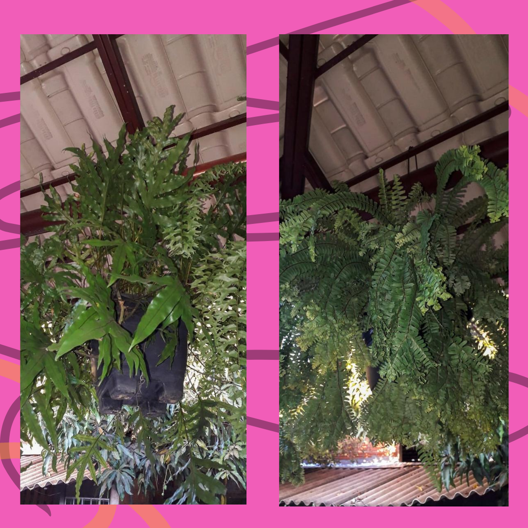 Temos as samambaias (existem várias espécies dela) mais ou menos umas seis variações em casa. Elas são bem sensíveis a luz, então não podem ficar expostas ao sol, gostam apenas da luz mesmo. Elas são coringas em qualquer ambiente, seja pendurada, ou em cima de alguma prateleira.