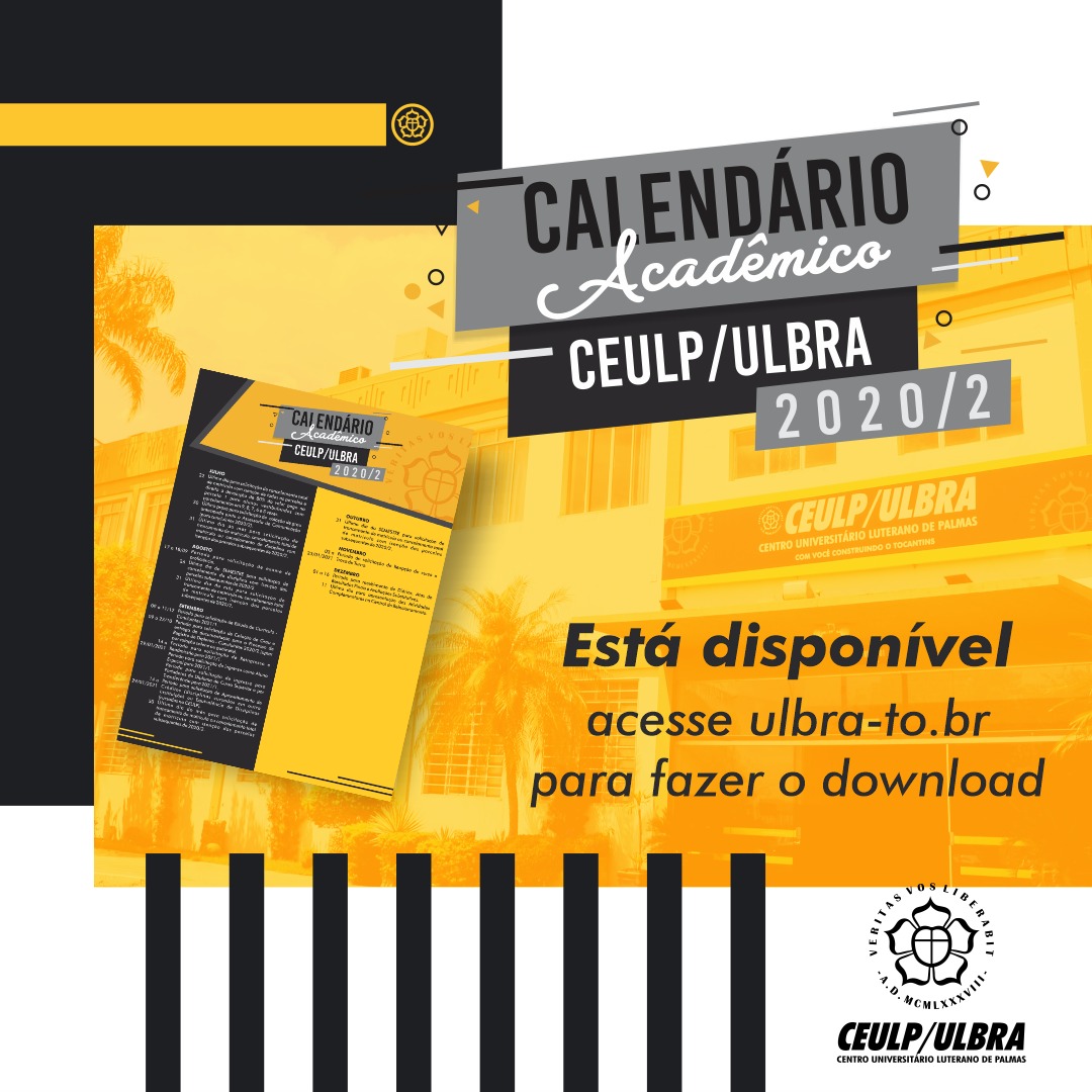 Semestre atípico e mudanças necessárias para adaptação ao período. Informamos que o calendário acadêmico de 2020 teve alteração e está disponível para visualização em nosso site ulbra-to.br.