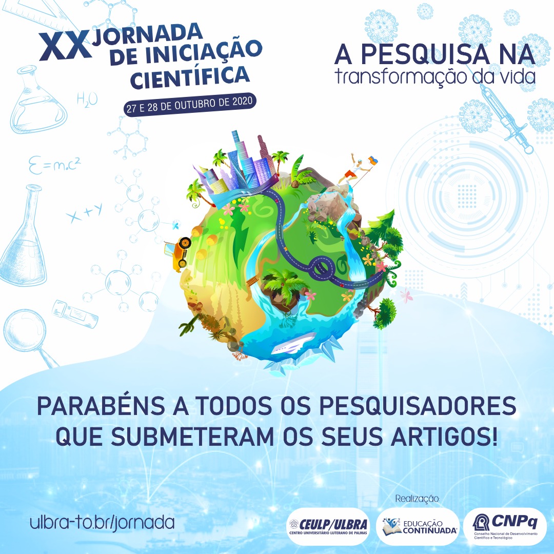 Em tempos de pandemia mundial e com diversos fatores nacional e local torna-se comum a falta de investimento e bolsas relativos ao conhecimento. Mas é justamente neste momento que devemos expandir a mente e criar novas realidades. “A pesquisa na transformação da vida” é tema da XX Jornada de Iniciação Científica do Ceulp/Ulbra, não poderia ser mais condizente, né?! E com alegria, agradecemos a todos os colaboradores, docentes e discentes que permanecem com coragem e espírito inovador para trilhar esse caminho. De maneira especial, parabenizamos a todos que se movimentaram para que esse evento fosse possível.
