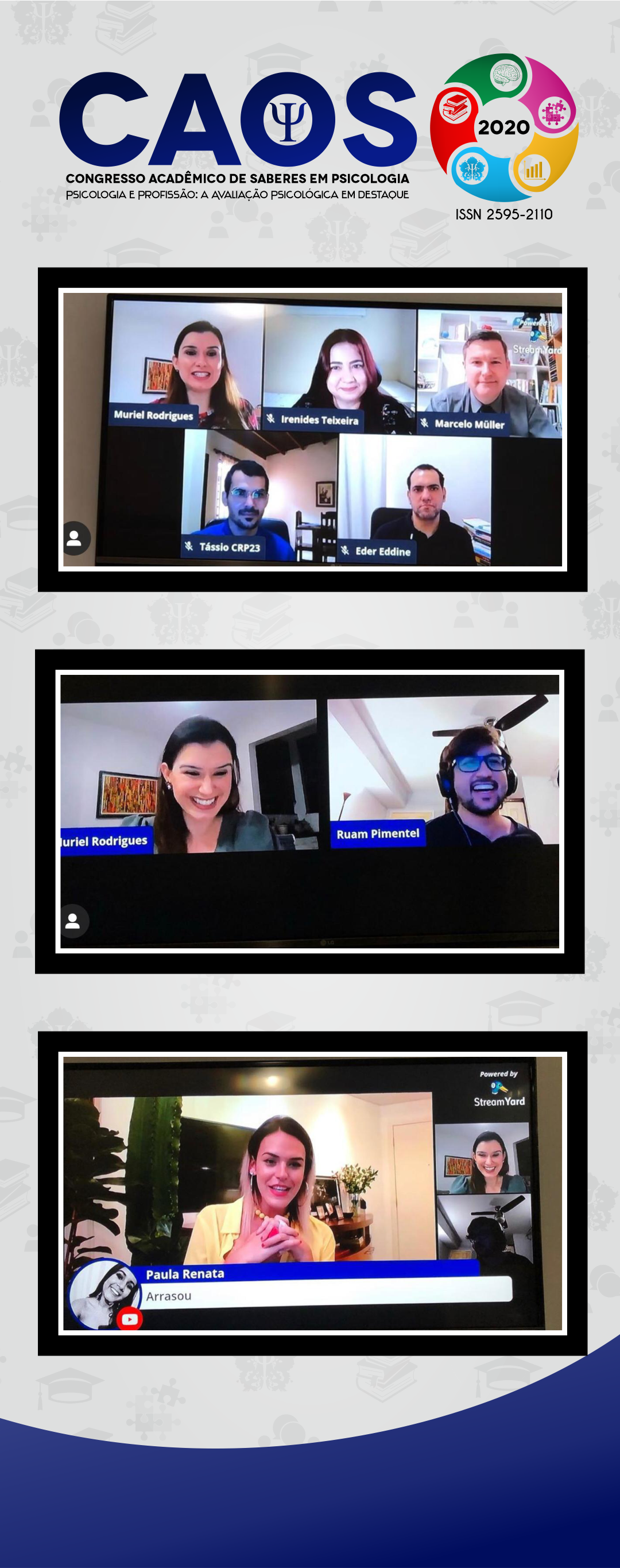 Aconteceu entre os dias 03 e 07 de novembro de 2020, o Congresso Acadêmico de Saberes em Psicologia – Caos 2020. A edição que pela primeira vez foi realizada totalmente em ambiente virtual, contou com o tema “Psicologia e Profissão: a avaliação psicológica em destaque”