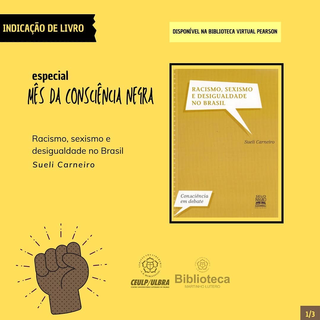 A primeira já foi postada e é a obra “Racismo, sexismo e desigualdade no Brasil”, escrita por Sueli Carneiro, filósofa e doutora em Educação, mulher negra e uma das fundadoras do Instituto Geledés.