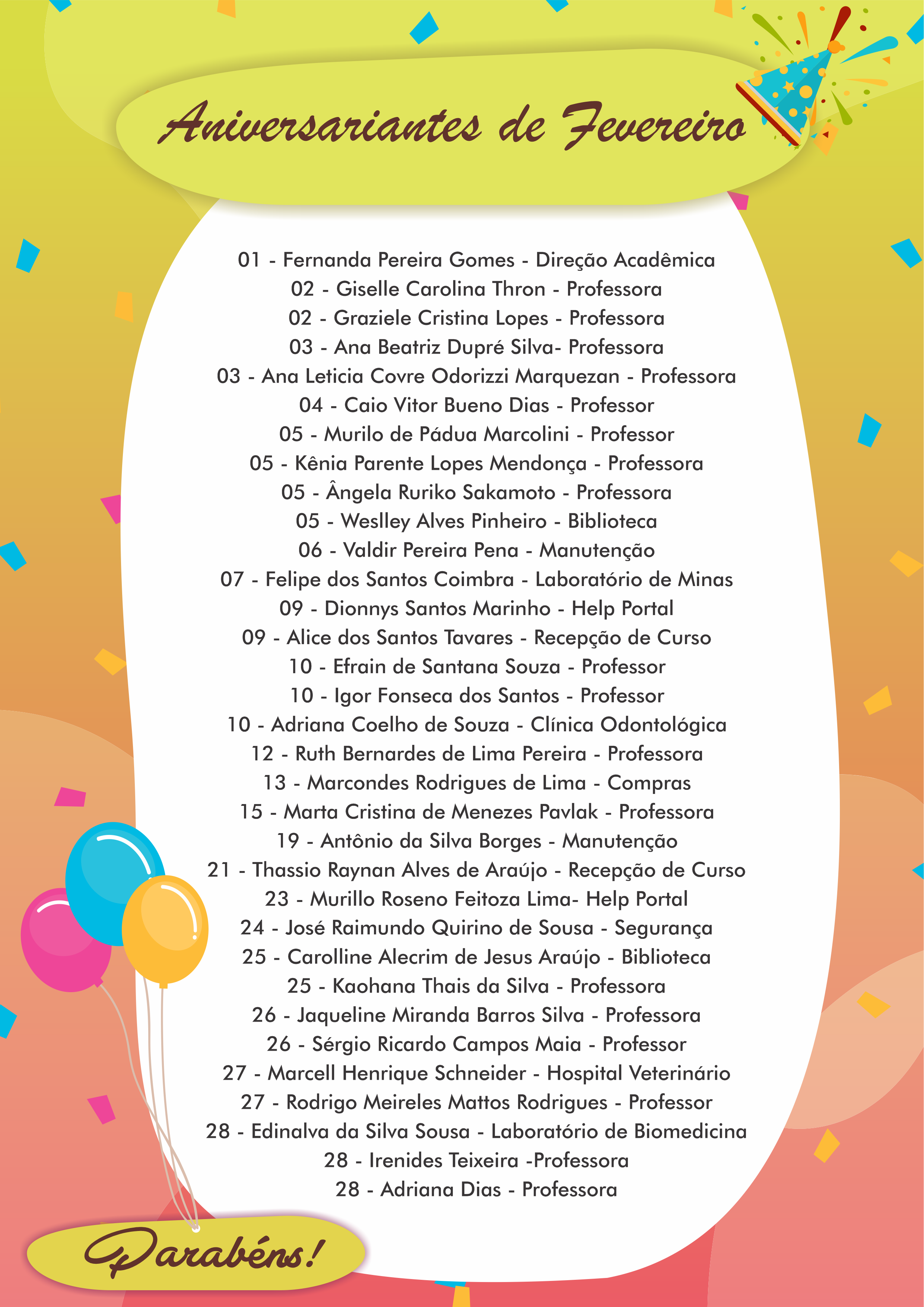 Caso não tenha recebido o e-mail ou ligação do Departamento Pessoal e queira confirmar se está na lista para realizar o exame pode entrar em contato pelo telefone 3219-8035.