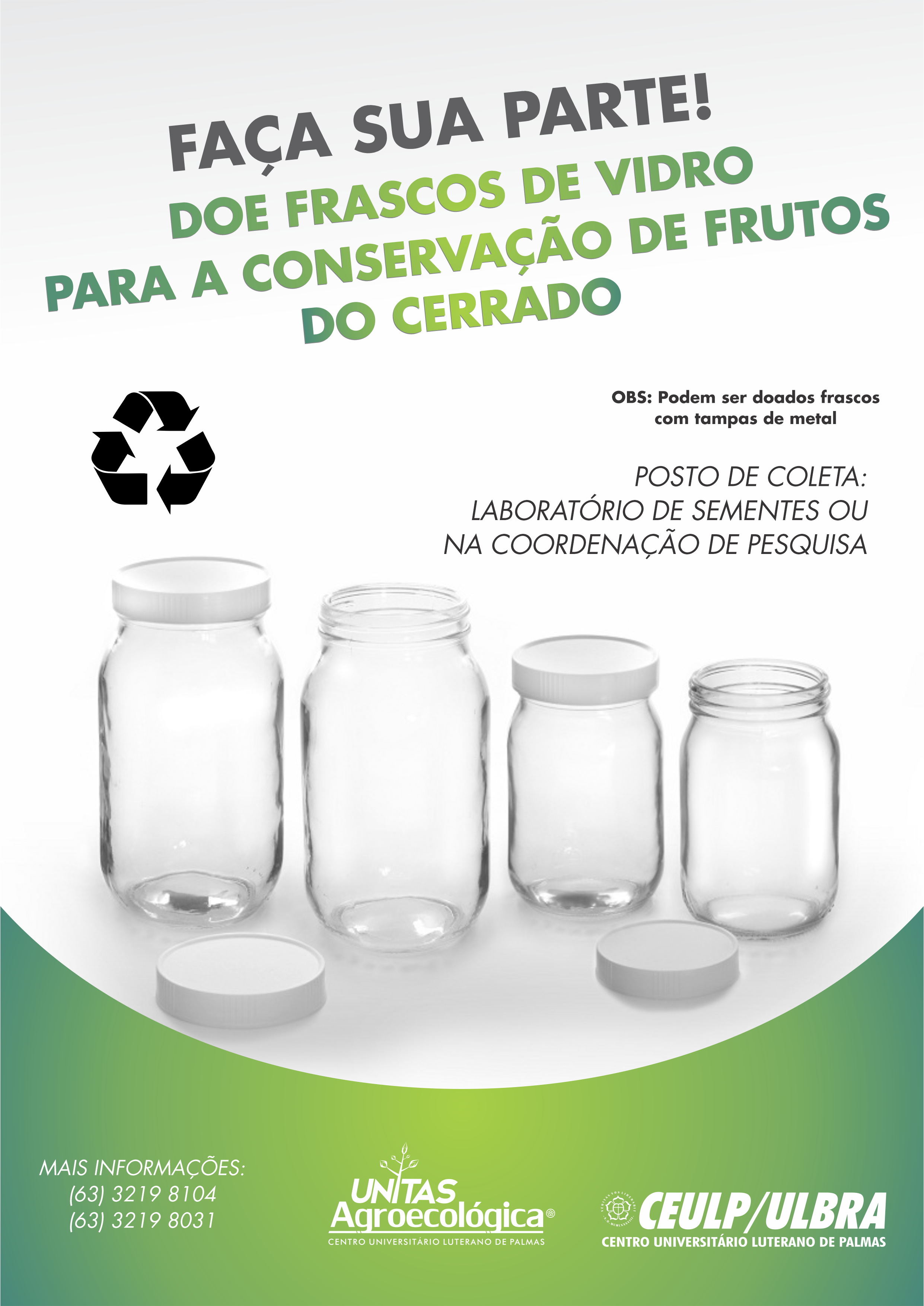 Você sabia que o Ceulp/Ulbra por meio da Unitas Agroecológica realiza uma campanha para arrecadação de frascos de vidro?
