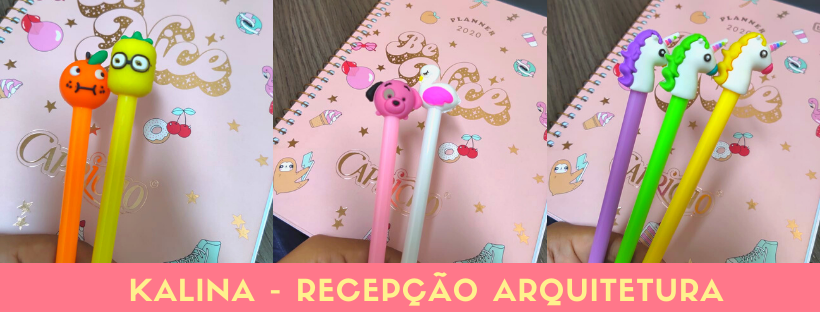 O que? Canetas em gel preta (decoradas) e refis coloridos