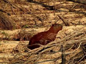 Encontrada em certas áreas das Américas do Sul e Central, próximo a rios e lagos, a capivara (Hydrochoerus hydrochaeris) é o maior roedor herbívoro do mundo. Alimenta-se de capins e ervas. É uma excelente nadadora, tendo inclusive pés com pequenas membranas. Ela se reproduz na água e a usa como defesa, escondendo-se de seus predadores. Ela pode permanecer submersa por alguns minutos. A capivara também é conhecida por dormir submersa com apenas o focinho fora d'água. No Pantanal, seus principais períodos de atividade são pela manhã e à tardinha, mas em áreas mais críticas podem tornar-se exclusivamente noturnas. Nas décadas de 60 e 70 as capivaras foram caçadas comercialmente no Pantanal, por sua pele e pelo seu óleo que era considerado como tendo propriedades medicinais. Estudos posteriores indicam que pode haver, no mínimo, cerca de 400 mil capivaras em todo o Pantanal.