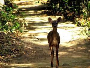 Sua pelagem é marrom-acinzentada, mais escura no meio do dorso e com o ventre mais claro, próximo do branco. A garganta e a parte inferior da cauda são esbranquiçadas e o pescoço acinzentado. A testa tem um tufo de pêlos escuros e os chifres, que só existem no macho, são galhadas simples e retas, sem ramificações, que atingem no máximo 12 cm de comprimento.A fêmea, ao invés de chifres, tem apenas uma elevação e sua pelagem é um pouco mais clara que a do macho. A maioria dos indivíduos tem uma pinta branca acima dos olhos que é inexistente nas outras espécies. O peso pode variar entre 11 a 25 kg, ficando geralmente próximo dos 17 kg. Sua dieta ampla que inclui broto de gramíneas, leguminosas, frutas e flores. Tem hábitos noturnos e diurnos; costuma sair pela manhã, sozinho ou aos pares, para se alimentar. Espécie solitária reproduz-se em todos os meses do ano e pressente a fêmea a grande distância. Eles ficam juntos por uma ou duas semanas e, após uma gestação de aproximadamente 206 dias, a fêmea tem um único filhote que pesa cerca de 500 g. A pelagem do filhote é marrom, salpicada de pintas brancas distribuídas pelos flancos.