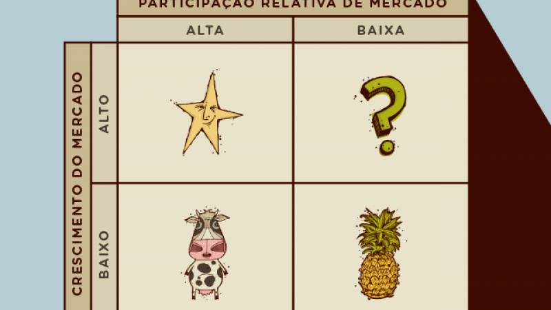 Dentro destas áreas, podemos observar os quadrantes: Estrela, Ponto de interrogação, Vaca leiteira e Abacaxi.