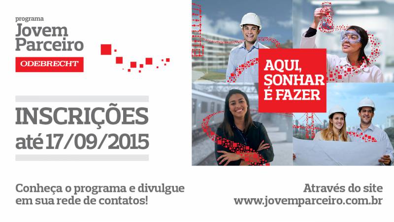 O programa Jovem Parceiro 2016 oferece vagas de Estágio para os Negócios Braskem, Odebrecht Ambiental e Odebrecht TransPort.