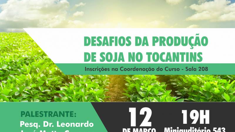 A aula Magna será sobre o seguinte: Desafios da produção de soja no Tocantis.
