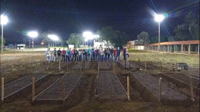 A área de campo onde foi realizada a aula prática é destinada para o cultivo de espécies anuais, e possui sistema de iluminação noturna. No dia 26/04 será finalizado o sistema de irrigação por aspersão automatizado em toda a área.
