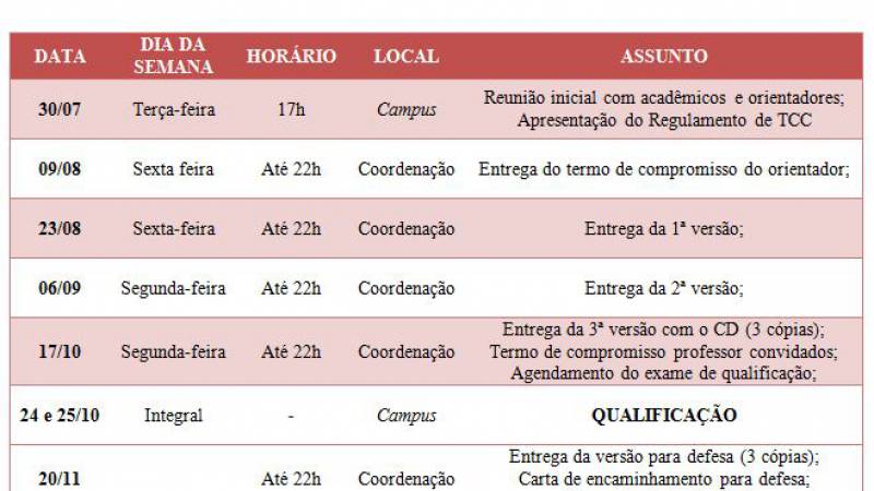 Foram alterados alguns dias da qualificação e defesa dos TCC da Biomedicina.