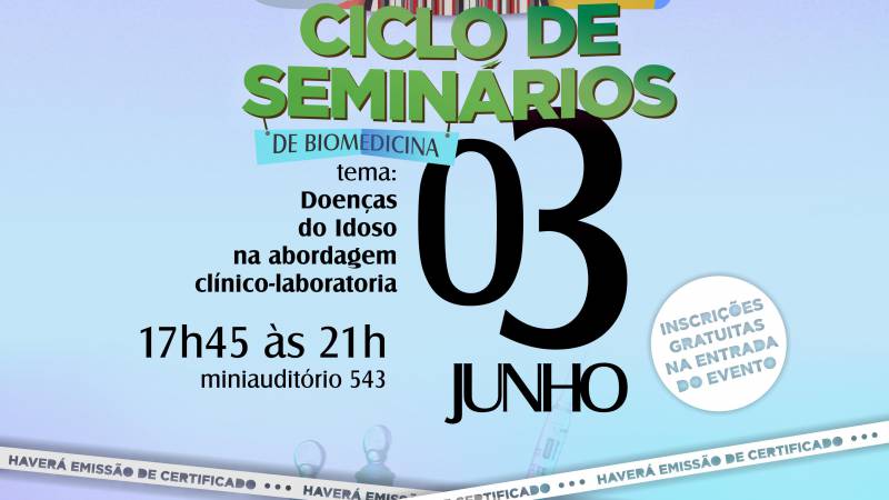 No dia 03 de junho haverá mais uma edição do Ciclo de Seminários da Biomedicina.