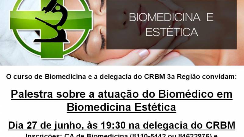 Palestra com Biomédica esteta de São Paulo ocorrerá na próxima sexta-feira (27/06) na delegacia do Conselho regional de Biomedicina.