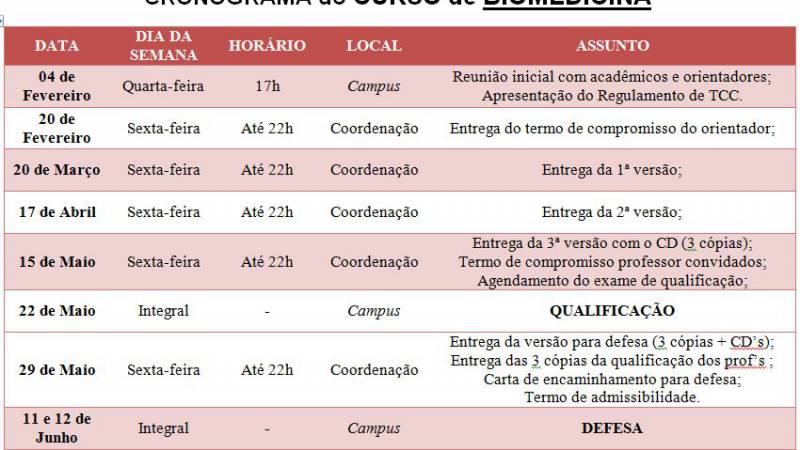 Cronograma de TCC Biomedicina
