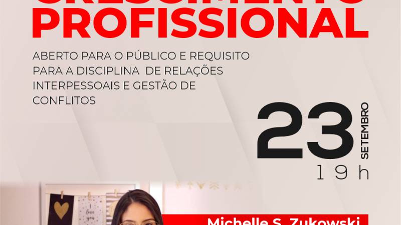 A LIVE é aberta ao público externo e requisito para a disciplina de “Relações Interpessoais e Gestão de Conflitos” e conta com a presença da psicóloga e Mestra em Educação Michelle Zukowski.