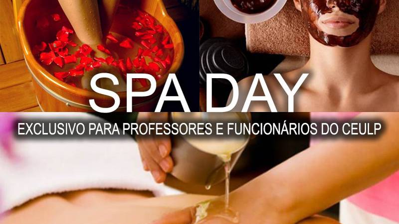 Convidamos todos os colaboradores do Ceulp/Ulbra para participar do momento SPA que acontecerá no dia 18/11 a partir das 19h com diversos procedimentos proporcionando relaxamento, conforto e bem estar. Venha participar!