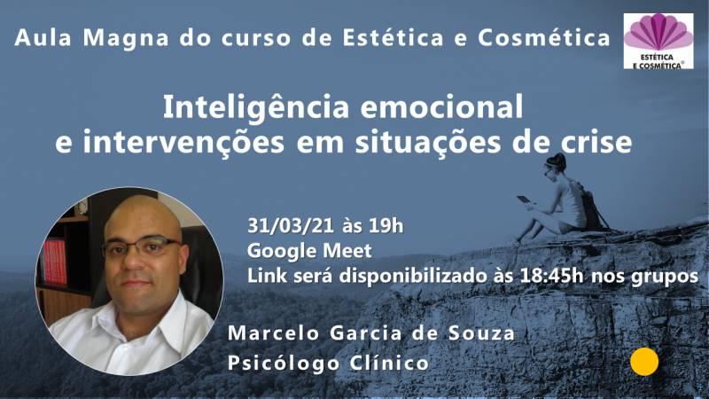 Acontece hoje as 19h a aula Magna do curso de Estética e Cosmética do CEULP/ULBRA. O tema inteligência emocional e intervenções em situações de crise será ministrado pelo psicólogo clínico Marcelo Garcia de Souza