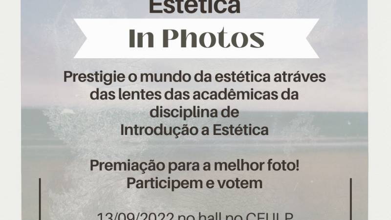 Nossos acadêmicos da disciplina de Introdução a Estética e Boas Práticas, orientados pela prof. Dra. Juliane Farinelli Panontin irão expor uma mostra de fotografias no I Estética In Photos.