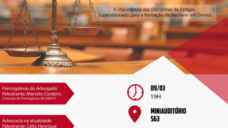 O Curso de Direito convida a todo(a)s o(a)s aluno(a)s matriculado(a)s nas disciplinas de ESTÁGIOS SUPERVISIONADOS (I, II, III, IV e V).
