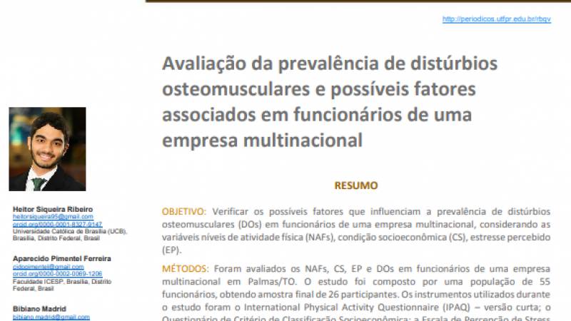 Atualmente, o egresso cursa Mestrado em Educação Física pela Universidade Católica de Brasília sob orientação do prof. Dr Aparecido Pimentel Ferreira, um dos co-autores do artigo. Recentemente, Heitor esteve no exterior apresentado seus trabalhos. Desejamos sucesso ao egresso que tanto nos honra. O artigo na íntegra pode ser acessado no link: https://revistas.utfpr.edu.br/rbqv/article/view/8115/5792.