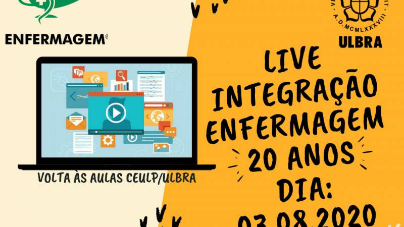 Participem do Google Meet " LIVE INTEGRAÇÃO ENFERMAGEM 20 ANOS " com a Coordenadora e Docentes do Curso, próxima segunda-feira, 03 de agosto de 2020, das 09 às 12h.