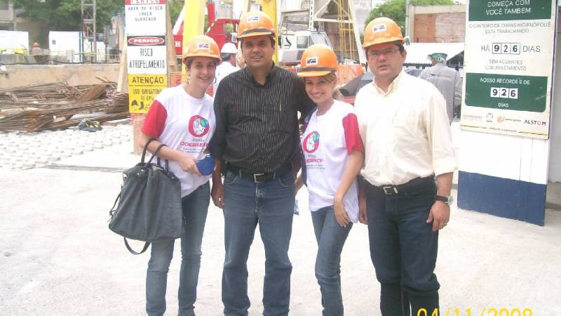 São Paulo Os professores Roldão Araújo e Carlos Spartacus e as acadêmicas Fernanda Demétrio e Janaina Pereira, estiveram no dia 04 de novembro em São Paulo visitando as obras do metrô.A construtora Norberto Odebrecht está executando a escavação do túnel da Linha 4 - Amarela do Metrô de São Paulo, sob a rua dos Pinheiros. Na escavação está sendo utilizado um Megatatuzão de 1.800 toneladas e diâmetro de 9,5 m.Os visitantes presenciaram de perto o trabalho de escavação e a eficiência do equipamento utilizado, onde ao mesmo tempo em que perfura o solo, a máquina instala o revestimento estrutural definitivo, com anéis pré-fabricados de concreto com fibras de aço.A previsão da Cia. do Metrô é que o equipamento trabalhe durante 20 meses para concluir o túnel de 7,5 km, até o poço de saída localizado no bairro da Luz, no centro da cidade. Ele escava, em média, 14 m por dia, a uma profundidade de 30 m. O megatatuzão é uma tuneladora do tipo shield EPBS (escavadeira de terra de pressão balanceada), fabricada na Alemanha.