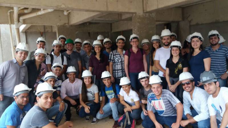 Os alunos da disciplina Tecnologia da Construção II, supervisionados pelo professor Denis Parente, visitaram hoje a obra de construção de 4 torres de 6 pavimentos, que está sendo executada pela empresa M&V Construções. A obra está em fase de execução dos revestimentos e com isso os alunos puderam acompanhar as diversas etapas deste serviço. Nestas visitas técnicas os alunos de engenharia civil vivenciam a organização das equipes, toda a logística, cronograma, itens de segurança e qualidade, ferramentas, equipamentos e materiais envolvidos em cada uma das etapas de construção de uma obra.