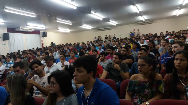 Alunos lotaram o auditório ontem – 24 de abril – na abertura da VII Jornada de Engenharia Civil. Na abertura do evento, que contou com a presença do Reitor Adriano Chiarini, o coral do CEULP/ULBRA fez uma belíssima apresentação durante o devocional com o Capelão Pastor Renato. A palestra da noite foi proferida pelo professor M.Sc. Fábio Henrique de Melo Ribeiro: “Projetar e Construir com Vistas ao Desempenho e à Sustentabilidade – O Desafio da Engenharia Nacional”. Após a palestra, os alunos participaram de um coquetel de confraternização.