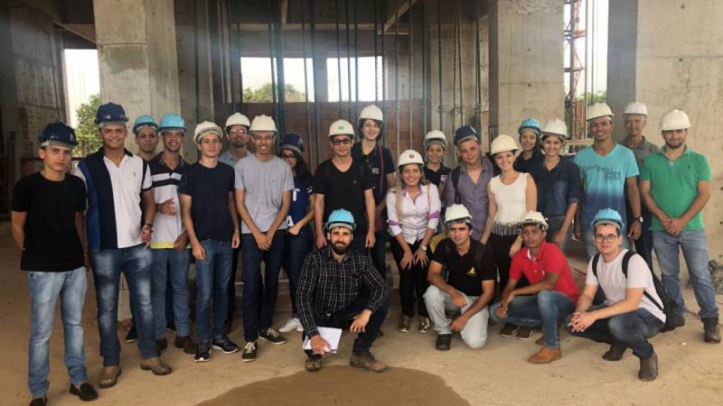 Além de entrar no edifício que está sendo construído e acompanhar as diversas etapas de serviços que estão sendo realizadas, os acadêmicos conheceram todo o canteiro, verificando a logística de recebimento, preparo e movimentação dos materiais de construção e dos equipamentos da obra.