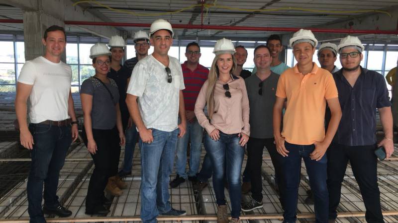 Primeiro visitaram uma obra com vigas mistas (aço + concreto). Observaram o uso de guindastes em obras deste tipo e tiveram acesso ao projeto da estrutura mista.