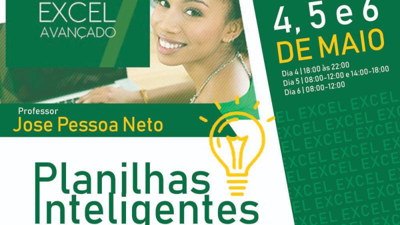 Será realizado nos dias 04, 05 e 06 de maio o curso de Extensão Planilhas Inteligentes (Excel Avançado), o qual será ministrado pelo Engenheiro Civil José Pessoa Neto (egresso do CEULP/ULBRA).