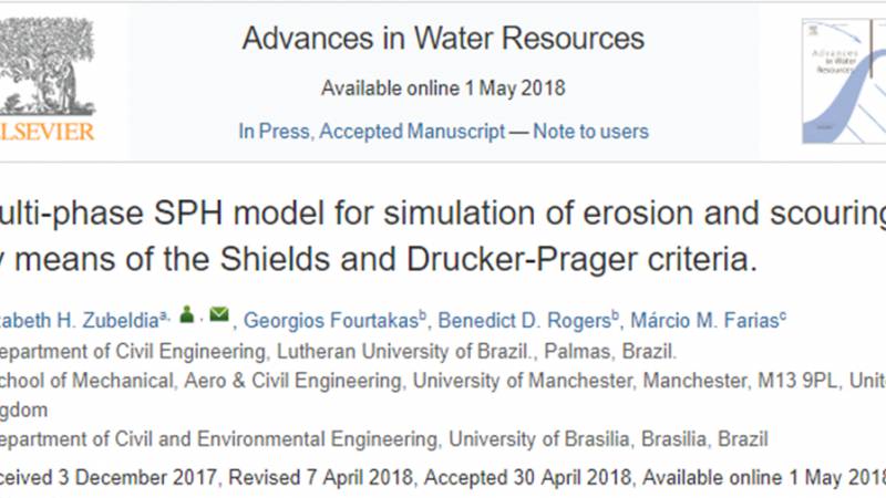 A Professora Dra. Elizabeth Hernandez Zubeldia teve o seu artigo “Multi-phase SPH model for simulation of erosion and scouring by means of the Shields and Drucker-Prager criteria" aceito na Revista Advances in Water Resources.