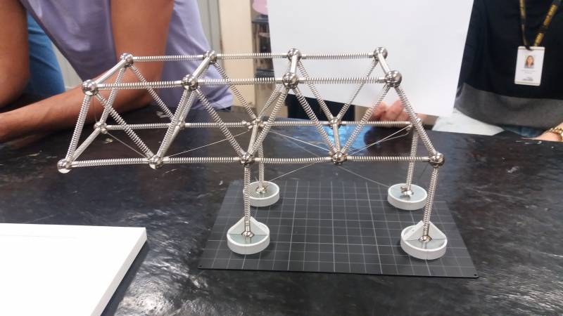 O MOLA é um modelo físico interativo que simula o comportamento das estruturas. Cada kit contém várias peças moduladas que conectam-se, permitindo inúmeras combinações e a montagem de diferentes sistemas estruturais. Ao fazer uso do MOLA, professor e alunos podem visualizar os movimentos e as deformações dos elementos estruturais e sentir as estruturas usando as próprias mãos.