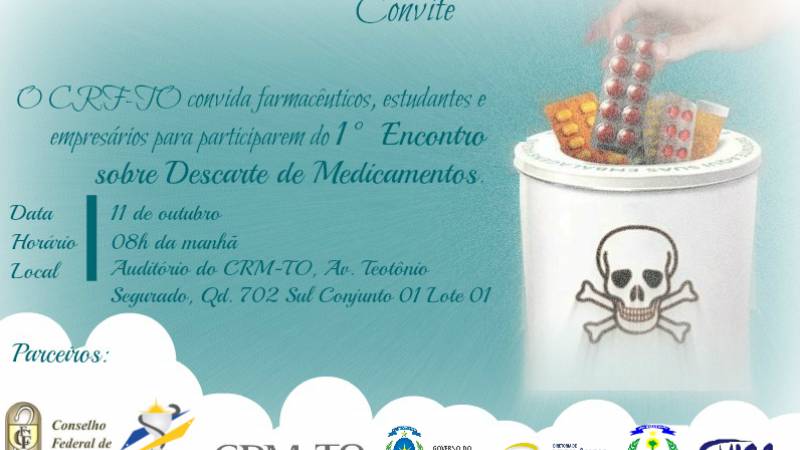 O CRF-TO convida os estudantes do curso de Farmácia do CEULP para participarem do 1° Encontro sobre Descarte de Medicamentos, que acontecerá no dia 11/10 às 8h no Auditório do Conselho Regional de Medicina do Tocantins, situado na Avenida Teotônio Segurado, Quadra 702 Sul Conjunto 01, Lote 01. A inscrição será realizada no dia do evento e a carga horária poderá ser aproveitada como Atividades Complementares.