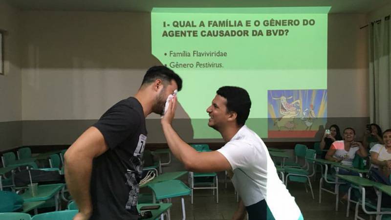 Os alunos do sétimo período do curso de MedVet do Ceulp/Ulbra finalizaram a semana de seminários de uma forma bem humorada. Fizeram um Quiz com direito a torta na cara.