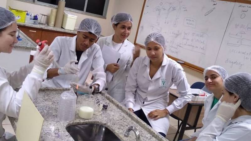 Na aula prática de Higiene e Inspeção de Produtos de Origem Animal II, sob supervisão da Profa. Ma. Taísa dos Santos, os alunos realizaram análises microbiológicas do leite.