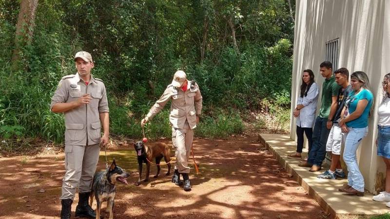 Alunos do primeiro período de Medicina Veteriná acompanharam o treinamento dos cães para busca de pessoas desaparecidas, e a importância do médico veterinário no tratamento dos cães que participam da Cinoterapia sob orientação dos bombeiros e da Profa. Ma. Mildre Pinto.