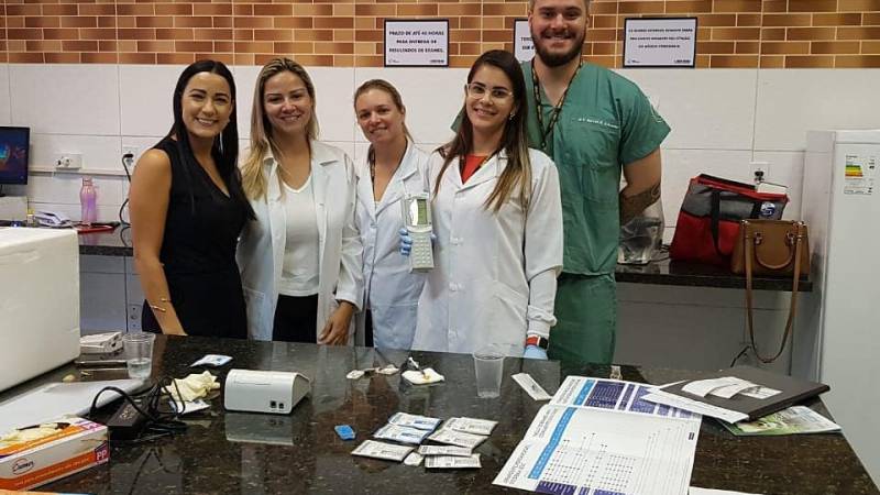 Equipe do Hospital Veterinário do CEULP ULBRA realiza treinamento com novo equipamento adquirido pela instituição. O analisador sanguíneo portátil I-Stat permite a análise dos gases sanguíneos, eletrólitos e equilíbrio ácido-base.