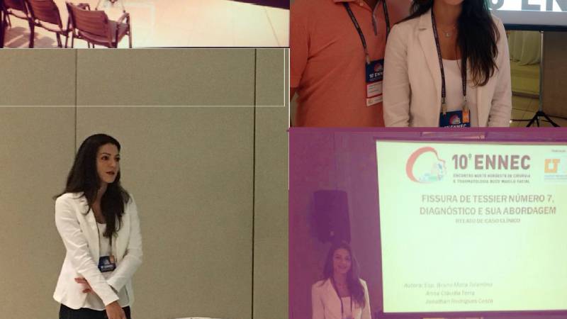 Os acadêmicos do curso de Odontologia do CEULP / ULBRA, Anna Claudia Terra Elias da Silva e Jonathan Rodrigues Costa, fizeram a apresentação de seu artigo com o tema: Fissura de tessier número 7 - Diagnóstico e sua abordagem no 10º ENNEC - Encontro Norte e Nordeste de cirurgia e traumatologia buco Maxilo facial realizado na cidade de Manaus - AM.