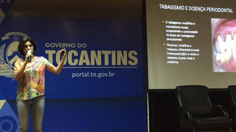 A Prof. Dra. Ana Claudia Rosa, do Curso de Odontologia, ministrou palestra sobre os malefícios causados pelo tabaco na cavidade oral, no dia 11 de maio de 2017, durante o I Ciclo de palestras - políticas públicas para o enfrentamento do tabagismo, promovido pelo governo do Estado É a Odontologia do Ceulp-ULBRA brilhando em Palmas!