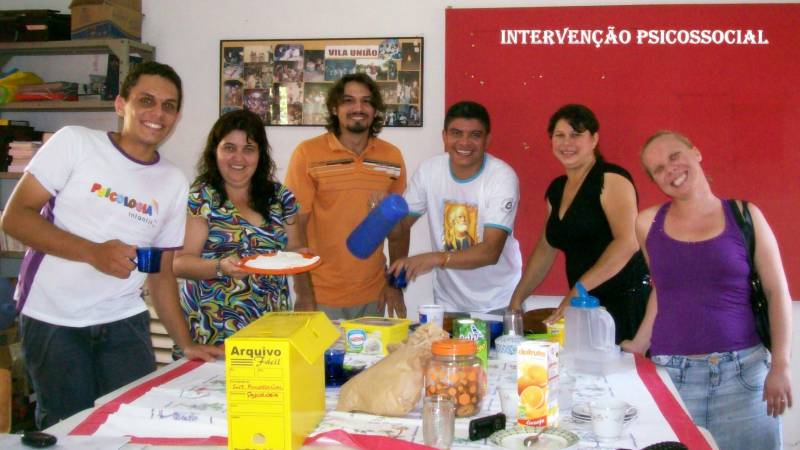 Uma das turmas da professora Andréia de Intervenção Psicossocial comemora o fechamento da disciplina com um café da manhã na comunidade, local onde ocorreram as intervenções.