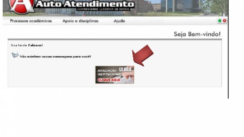 Ao entrar no sistema da Ulbra Canoas, pelo auto atendimento, aparece um ícone de Avaliação Institucional. [conforme imagem]A AVALIAÇÃO VISA FUNDAMENTAR O PLANEJAMENTO ESTRATÉGICO DO SEU CURSO!!NÃO DEIXE DE CONTRIBUIR!!1