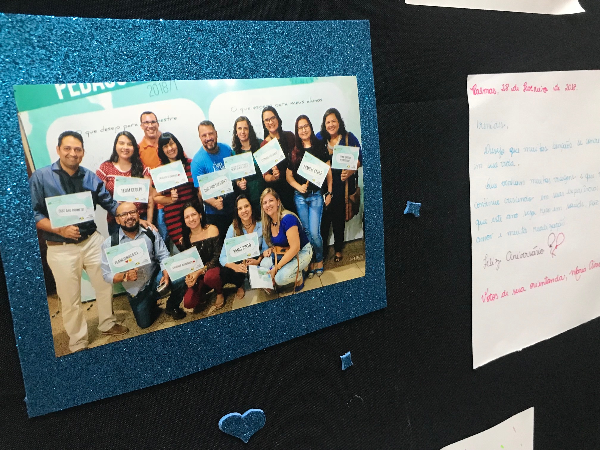 Na tarde desta quarta-feira (28), os acadêmicos de psicologia prestaram homenagens de aniversário à Irenides Teixeira, coordenadora do curso. Foram confeccionados um mural com mensagens escritas a próprio punho por estudantes, professores e amigos; e também uma festa com um bolo em homenagem a uma das paixões da professora, a fotografia.