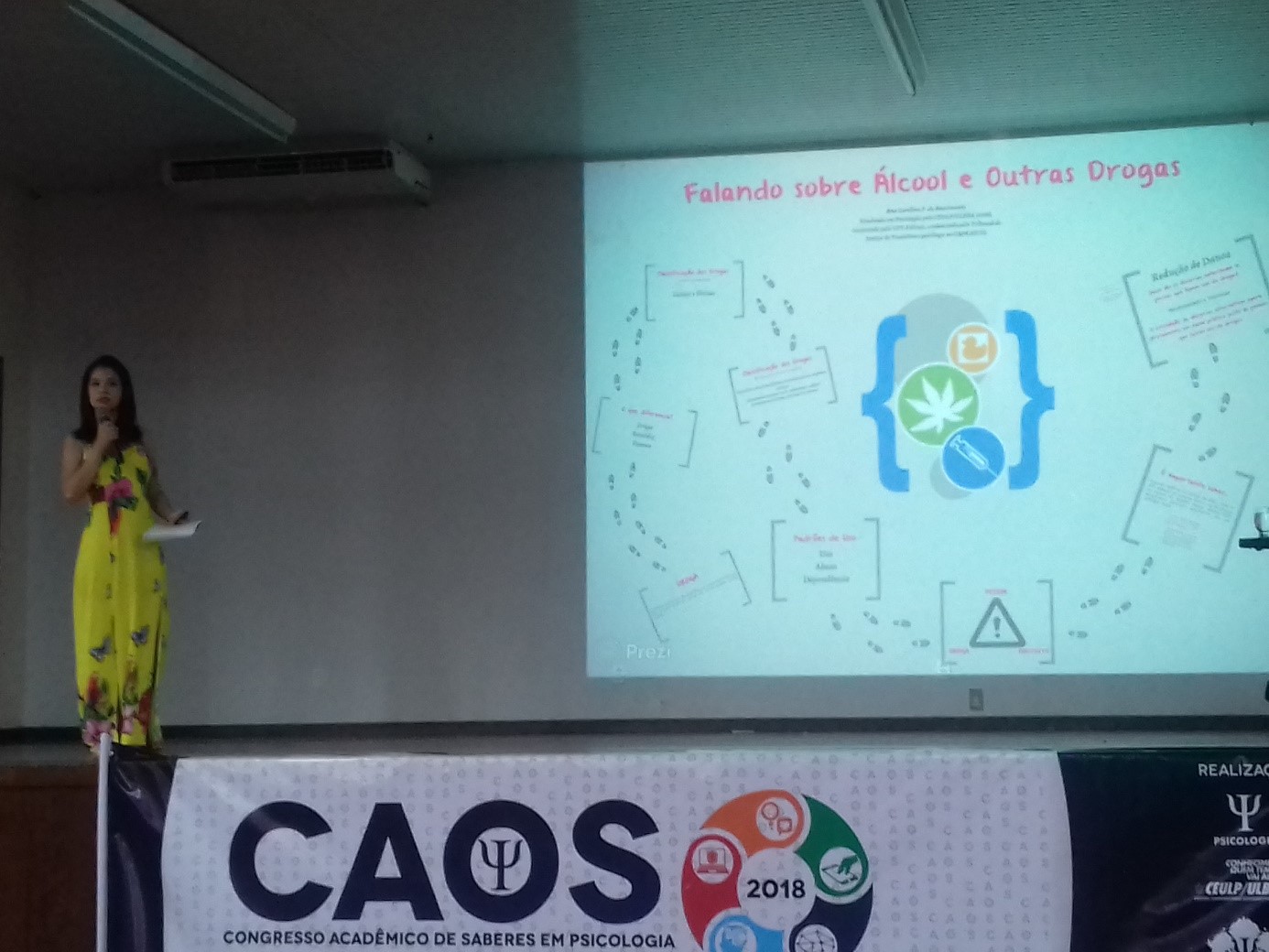 Por fim, Ana Carolina desmistifica um pouco sobre o que é droga, suas classificações, as diferenças entre uso, abuso e dependência. Apresenta também três olhares sobre as drogas: o da saúde, o da justiça e o da religião. Logo após, fala de um quarto olhar, o da redução de danos (RD), que propõe o olhar da cidadania, de escolha. Enfatiza que o papel do psicólogo nesse âmbito se dá pelo acolhimento incondicional de quem procura pelo serviço e também dos que estão em situação de rua, através do Consultório na Rua.