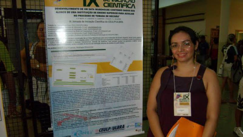 A aluna Valéria Pereira Mota, em trabalho desenvolvido em conjunto com a Sílvia, a Isabel, o Anderson Noleto e orientado pelo professor Fernando Luiz de Oliveira, conquistou o 2º Lugar na XI Jornada de Iniciação Científica do CEULP/ULBRA.