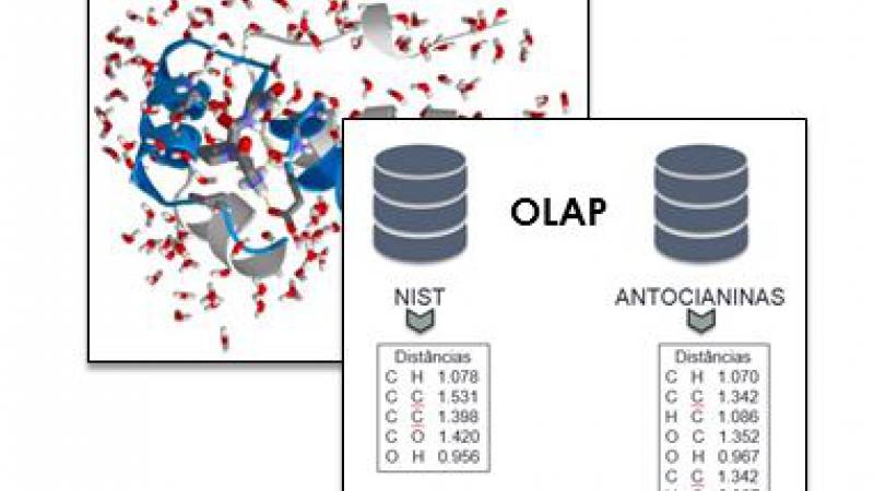 A simulação de dinâmica molecular possibilita obter informações de uma molécula, por meio de sua evolução temporal no sistema, e permite extrair informações como, por exemplo, as distâncias entre os átomos ao longo do processo de simulação. Estas distâncias podem ser utilizadas para identificar como ocorre o processo de quebra de ligações em moléculas, quando comparadas com uma base de dados de referência, disponibilizada pelo NIST (National Institute of Standards and Technology). Porém a simulação da dinâmica molecular retorna uma grande quantidade de informações, o que dificulta a comparação manual com a base do NIST. Assim, uma ferramenta OLAP permite automatizar o processo de análise dos dados, identificando os momentos em que ocorrem estes fenômenos em moléculas de antocianinas.
