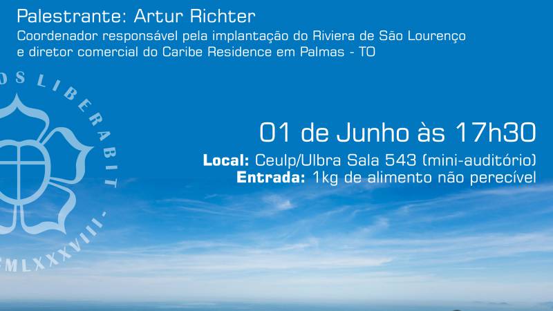 Ocorrerá no dia 01 de junho de 2016 ás 17:30 no miniauditório 543, no bloco 5 no CEULP/ULBRA, a palestra: Implantação e Gestão de Ambiental de Condomínios Horizontais proferida por Artur Richter, consultor técnico do Aphaville em SP e do Riviera de São Lourenço.