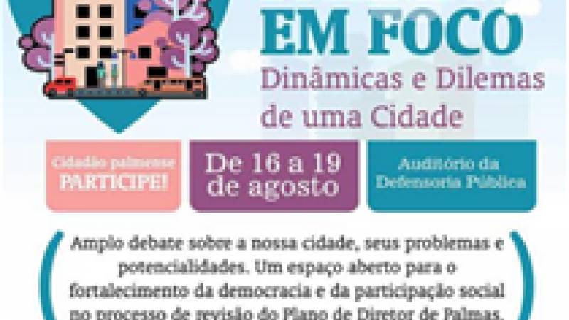 O Seminário Palmas em foco: dinâmicas e dilemas de uma cidade objetiva dar continuidade ao debate promovido pelo “Palmas em foco: participação e direito a cidade” no sentido de resgatar o rico e democrático debate sobre a cidade realizado em fevereiro deste ano (2016).